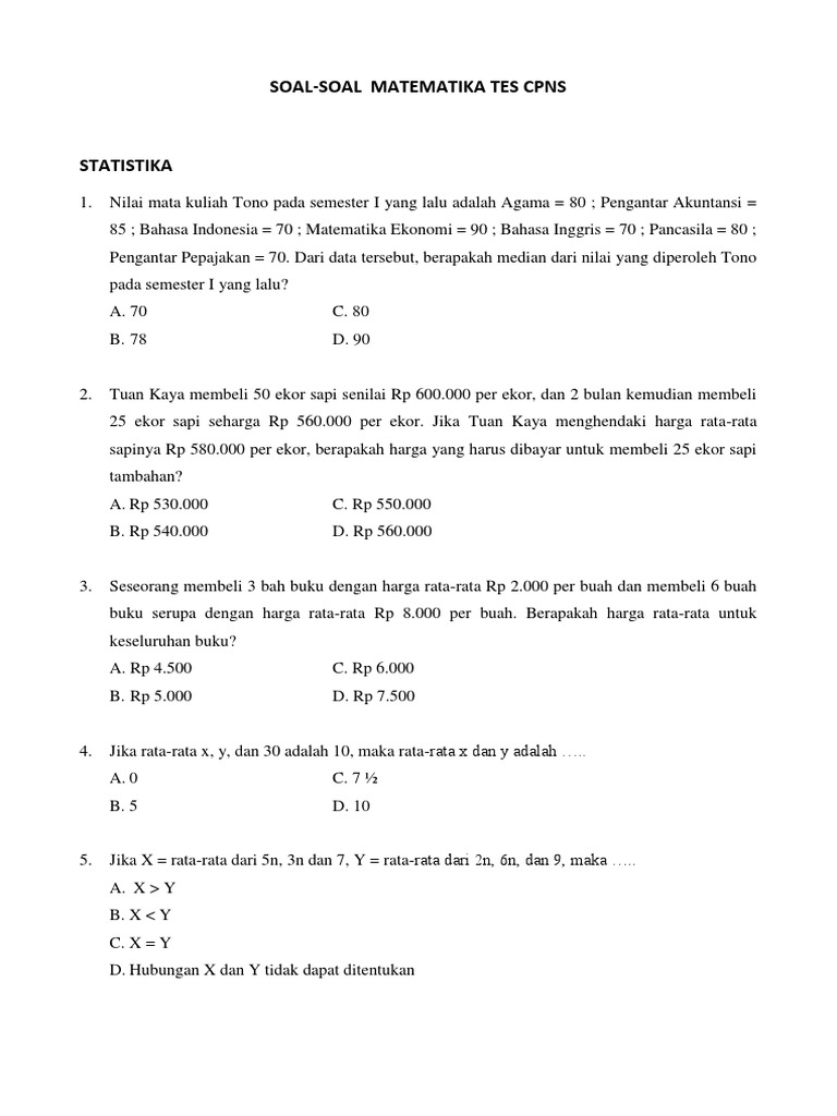 Doc Statistika S In The Air Jesika Ipi Academia Edu from 0.academia-photos.com Contoh soal tiu cpns tes logika cerita ii : Contoh soal cpns dapat kamu gunakan sebagai latihan mengerjakan soal soal cpns. Contoh soal cpns 2020 terbaru dan pembahasan. Jangan khawatir kehabisan referensi belajar. Secara umum statistika merupakan cabang ilmu yang mempelajari bagaimana merencanakan, mengumpulkan, menganalisis. Melakukan demonstrasi secara anarkis c. Soal no.5 (um ugm 2012 mat dasar). Kumpulan latihan soal tes cpns tahun 2021 dan pembahasannya.